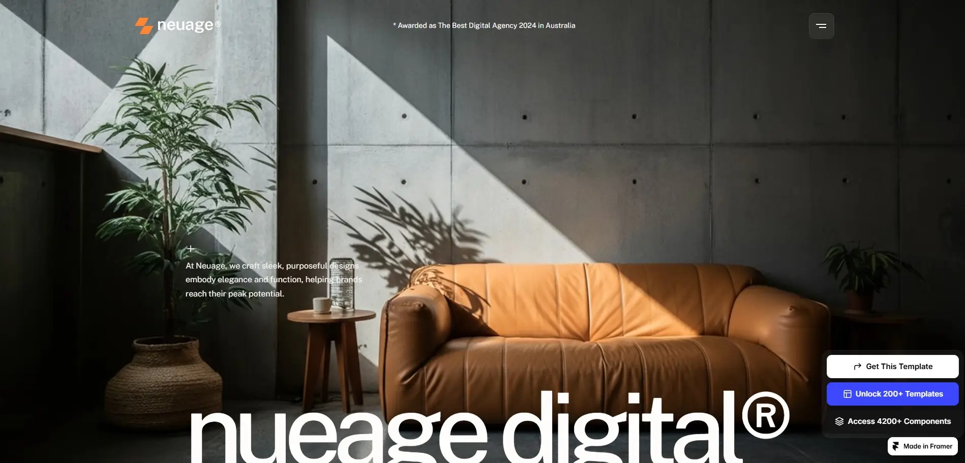 Creative studios, freelancers, and digital marketers will love Neuage Free. This Framer template blends minimalism with bold design, creating an agency website that feels polished yet playful.
