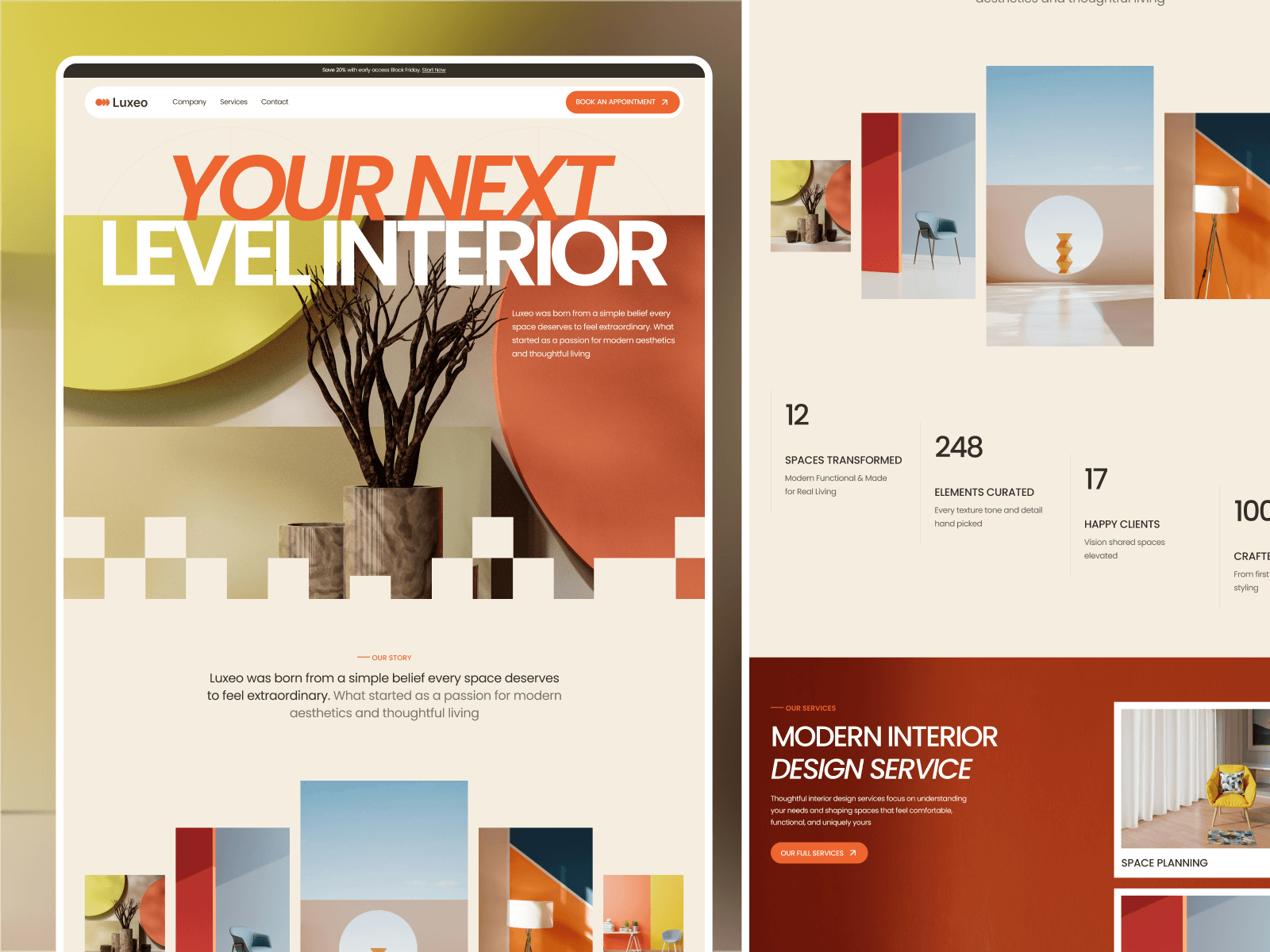 The portfolio pages let you highlight every room, every detail, and every design choice. Your clients will see exactly why they should pick you. Luxeo works great for interior designers who want to look professional without the wait. No coding needed. Just add your photos, update the text, and you're ready to go. The clean layout keeps attention on your beautiful projects, not cluttered menus.