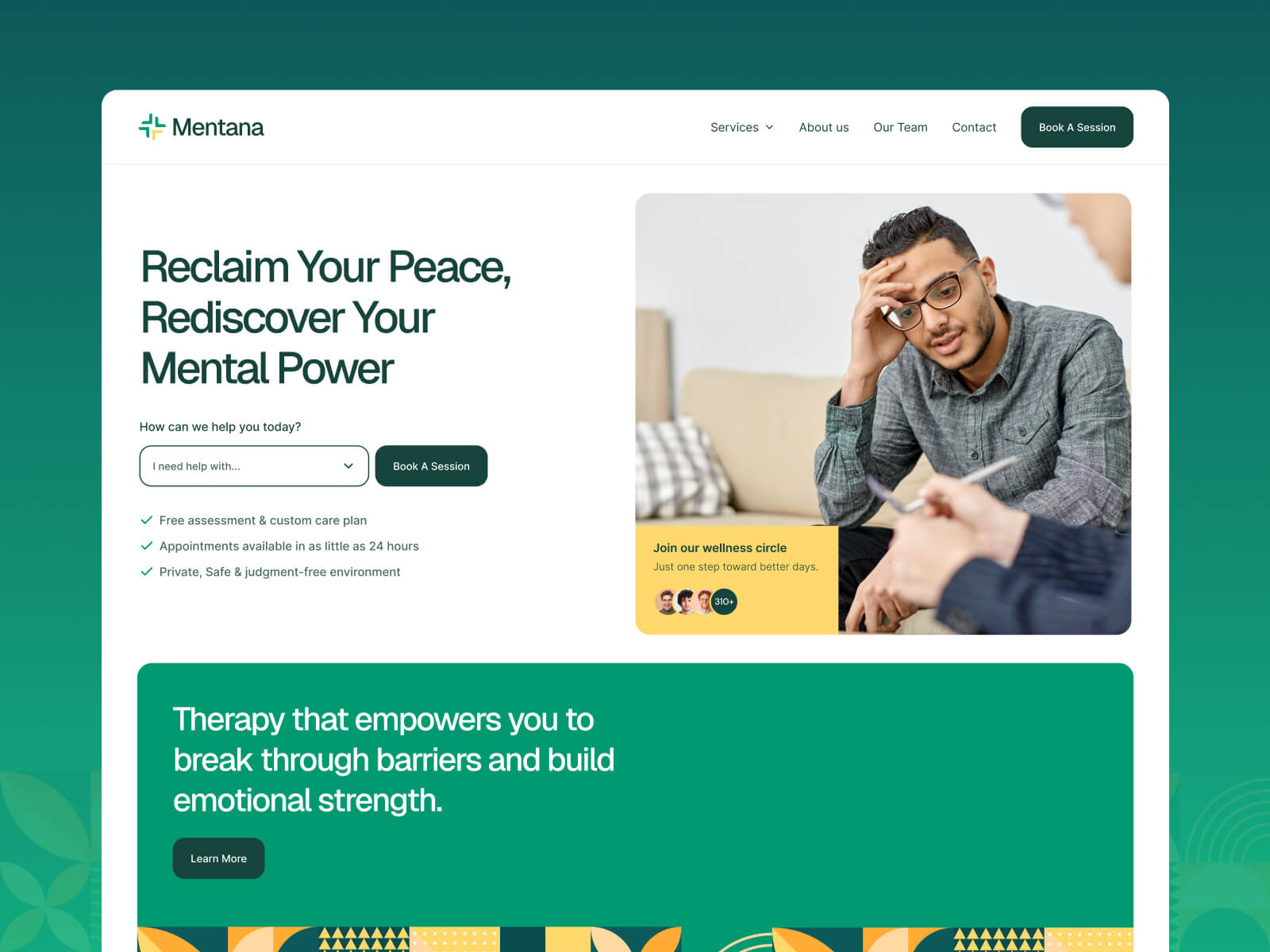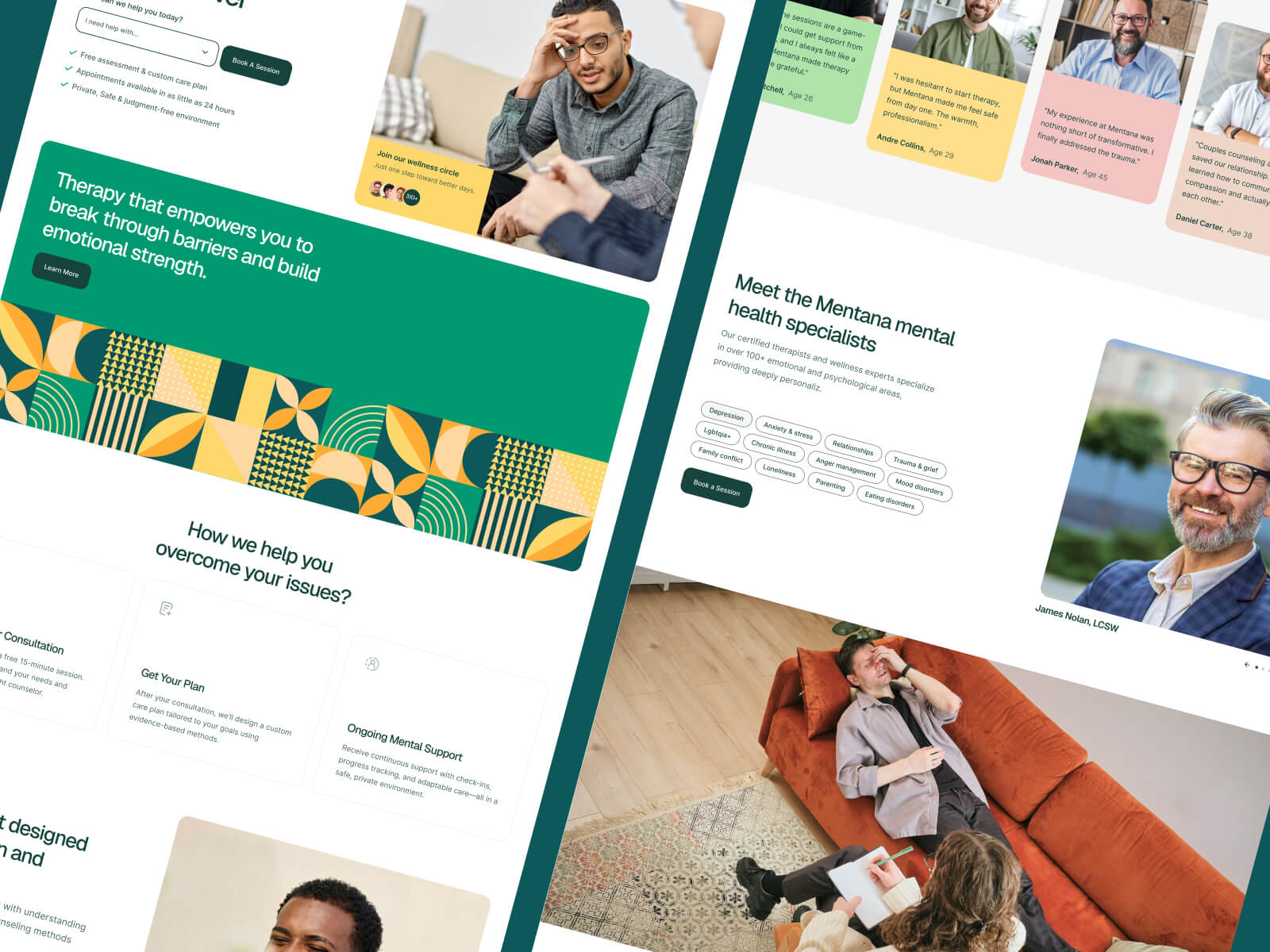 What makes Mentana special is how it balances professionalism with warmth. Your mental health expertise shines through in a way that feels approachable, not clinical. Beautiful testimonial sections build trust in your therapy practice, while thoughtfully designed intake forms make starting counselling less intimidating.