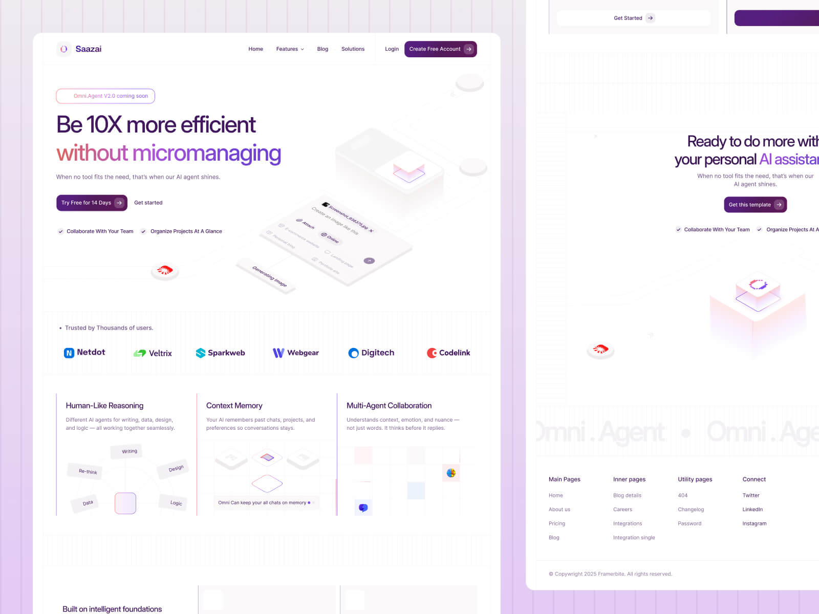 With its colorful and trendy design, Saazai sets the stage for a visually captivating user experience. The template comes with 15 ready pages, providing a comprehensive solution to showcase your SaaS business in a modern and engaging way.